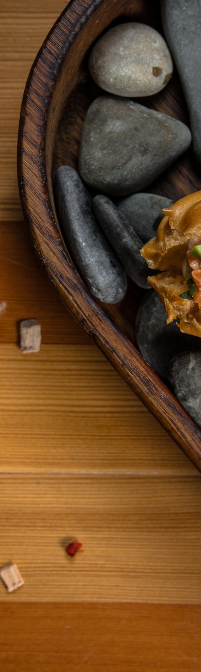 Эклеры на камнях с рийетом из брискета